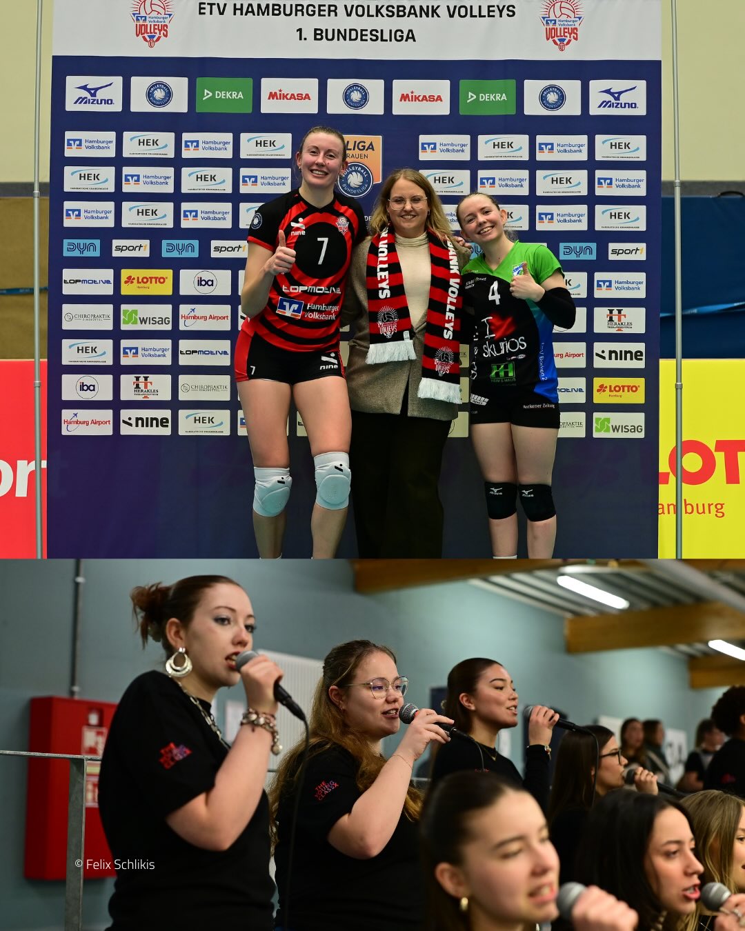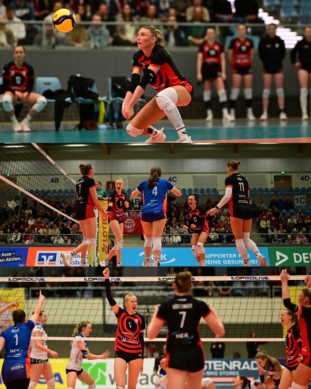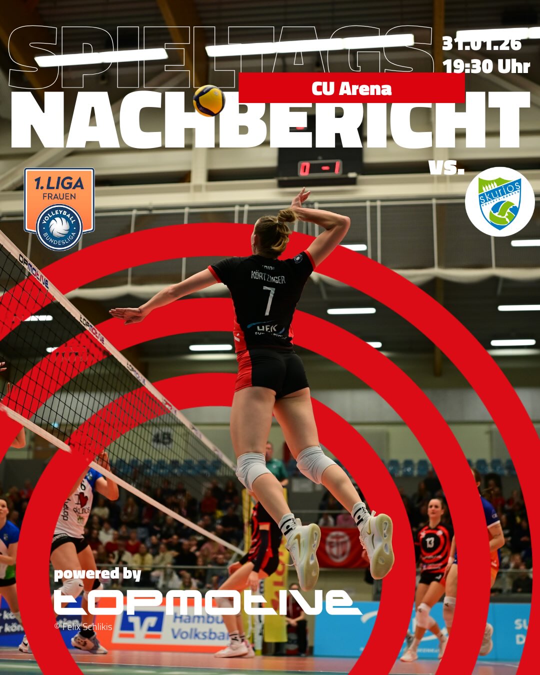 Vor ca. 750 Zuschauenden in der CU Arena zeigten die ETV Hamburger Volksbank Volleys wiederholt Nerven. Nach einem holperigen Start gelang es aber trotz eines großen Kampfes nicht, das Spiel zu gewinnen, sodass wir uns den Mitaufteigerinnen mit 1:3 (12:25 21:25 25:22 25:22) geschlagen geben müssen.