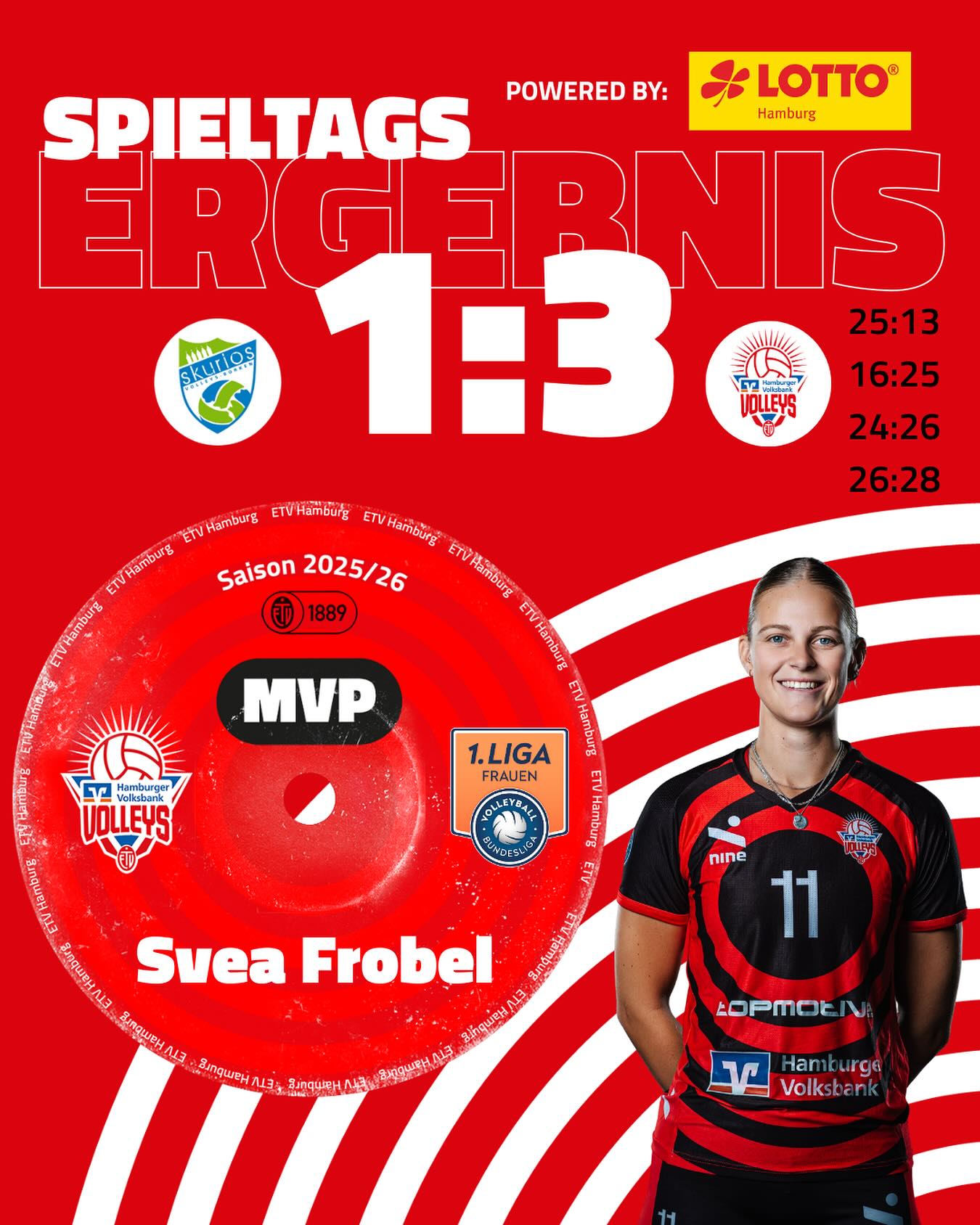 Die ETV Hamburger Volksbank Volleys verloren am Sonnabend, den 29. November 2025 gegen die Tabellennachbarinnen Schwarz-Weiß Erfurt mit 3:1 / 96:70 (21:25 / 25:13 / 25:18 / 25:14), konnten aber im ersten Satz überzeugen und zunächst mit 1:0 in Führung gehen.