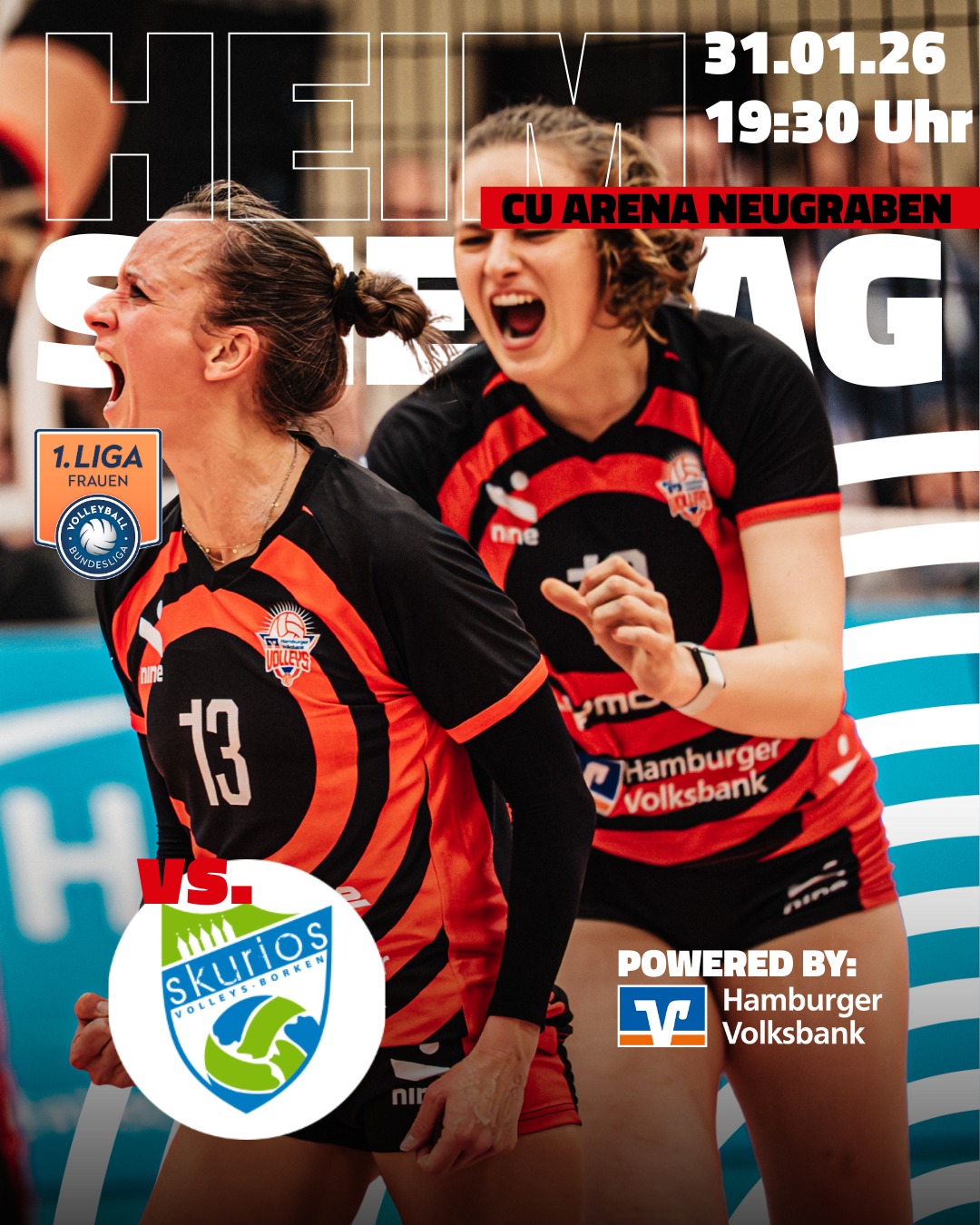 Am kommenden Samstag steht für unsere Hamburger Volksbank Volleys das nächste wichtige Heimspiel gegen unsere Mitaufsteigerinnen aus Borken an.