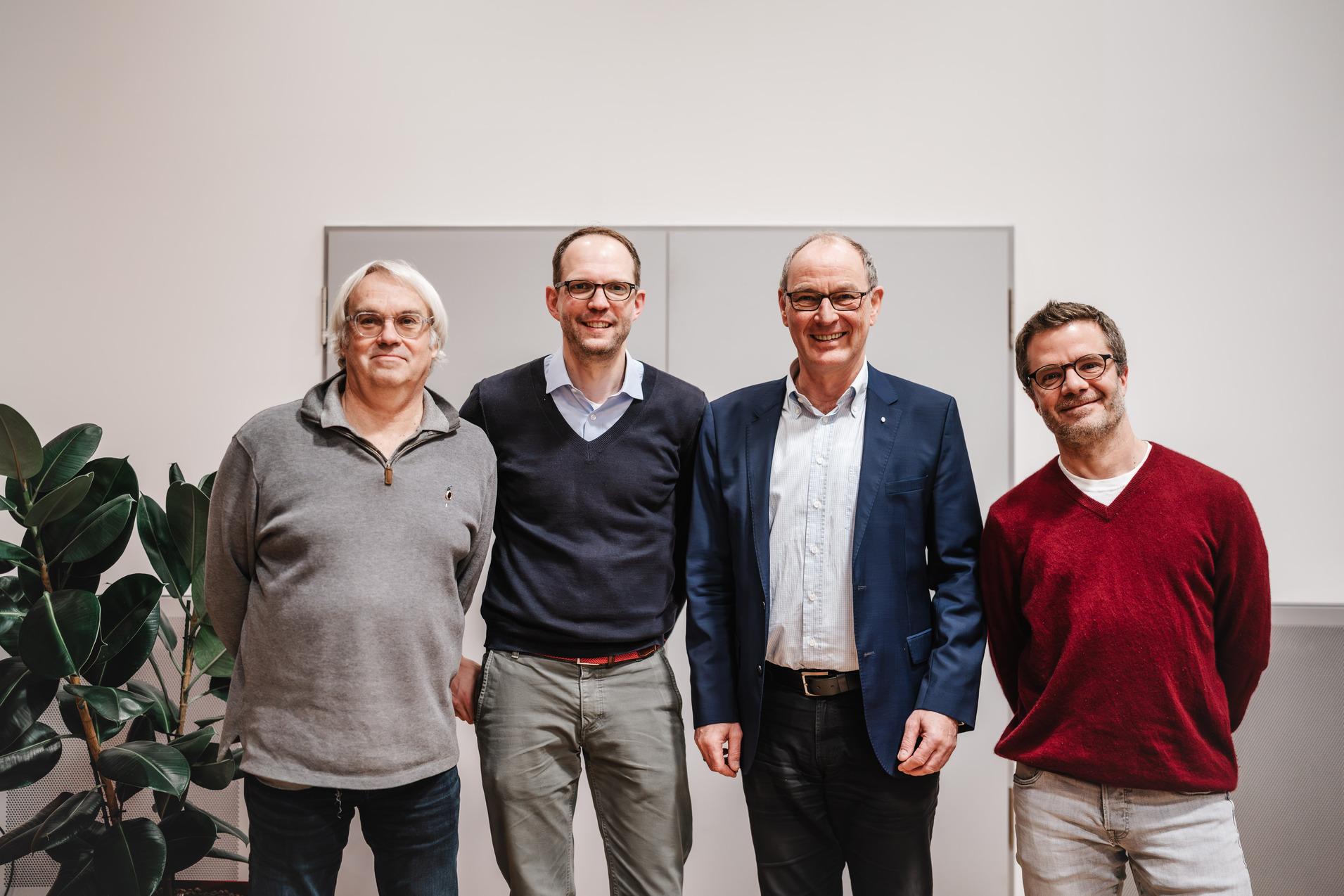 Der 1. Vorsitzende Frank Fechner (2. v. re.) mit den neuen Aufsichtsratsmitgliedern Andreas Hardt (li.), Rolf-Peter Raßner und Til Bernstein (re.)