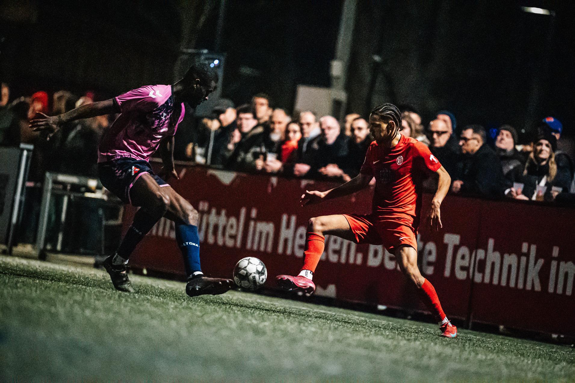 Von Beginn an zeigte Altona 93 eine beeindruckende Leistung. Sie drückten ETV stark in die Defensive und setzten die Gegner mit schnellem Passspiel und aggressivem Pressing unter Druck. Diese Taktik zahlte sich bereits in der ersten Halbzeit aus. In der 25. Minute erzielte Gianluca Przondziono das erste Tor des Abends, die Fans jubelten und feierten diesen frühen Führungstreffer. Nur wenige Minuten später, in der 33. Minute, erhöhte Bilael-Pascal El-Nemr auf 2:0 für Altona 93. Die Stimmung im Stadion war euphorisch, und die Anhänger von Altona 93 konnten sich bereits auf einen möglichen Sieg freuen.