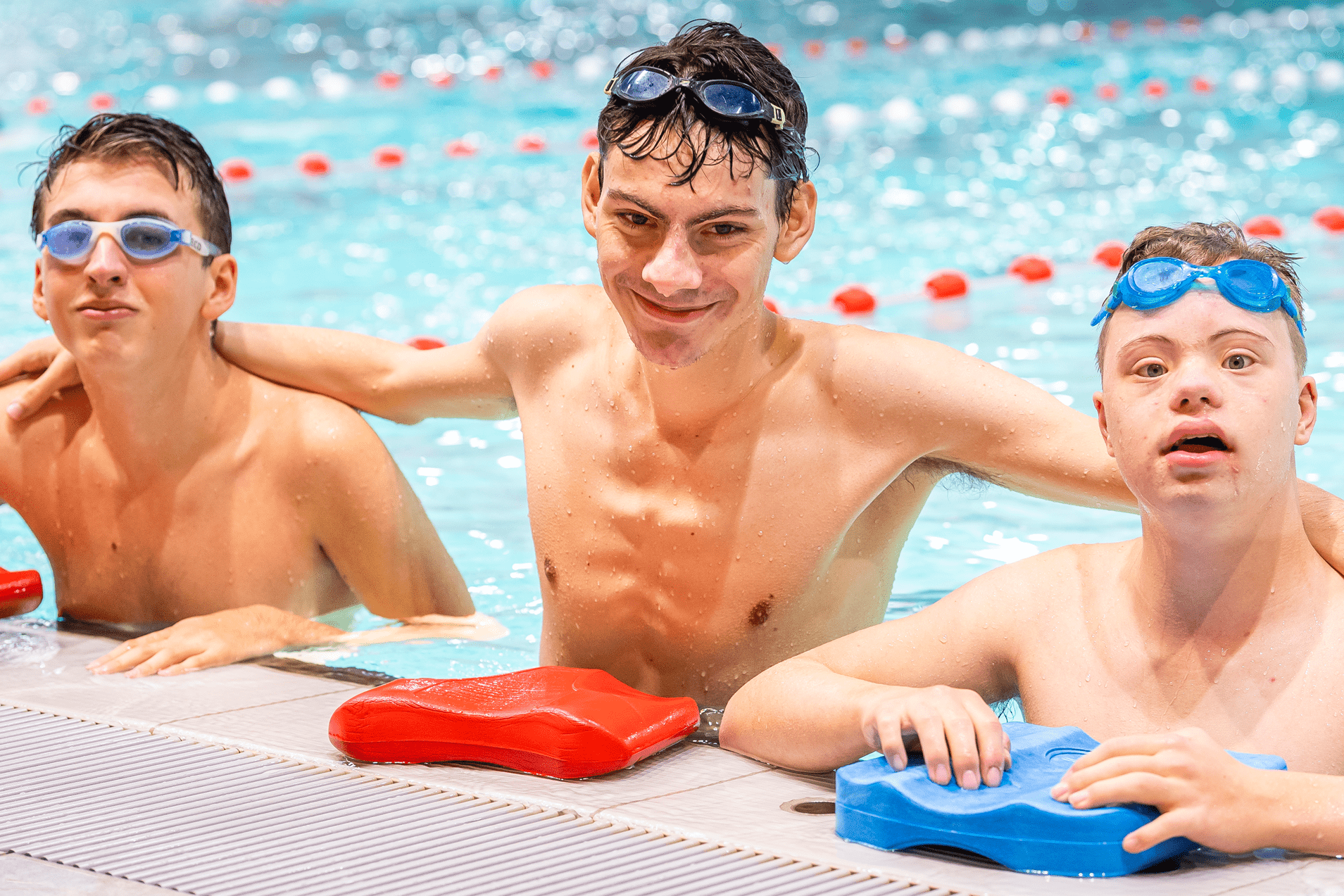 Wir wollen allen Kindern, ob mit oder ohne Behinderung, die Teilnahme an Schwimmkursen ermöglichen. Es ist für uns eine Herzensangelegenheit, dass jedes Kind Schwimmen lernt oder sich zumindest sicher im und am Wasser verhält. Wir bieten sowohl inklusive Kurse, als auch ein Angebot ausschließlich für Kinder mit geistiger Behinderung an.