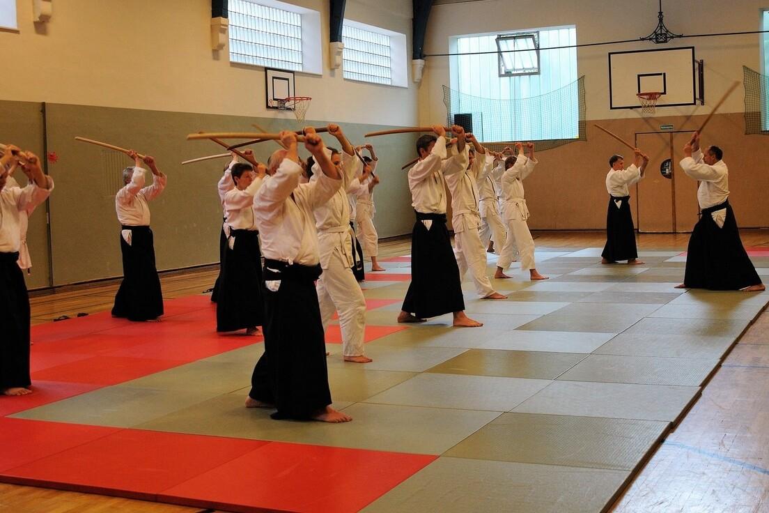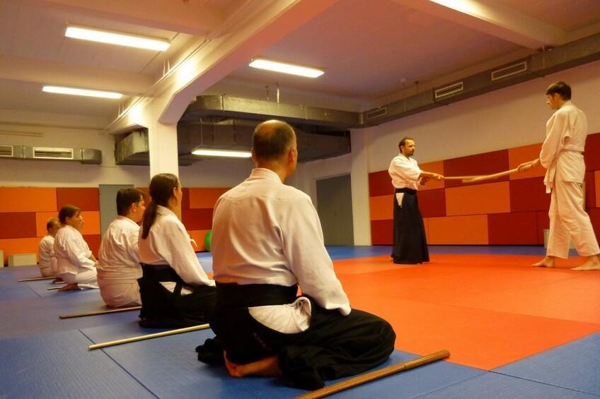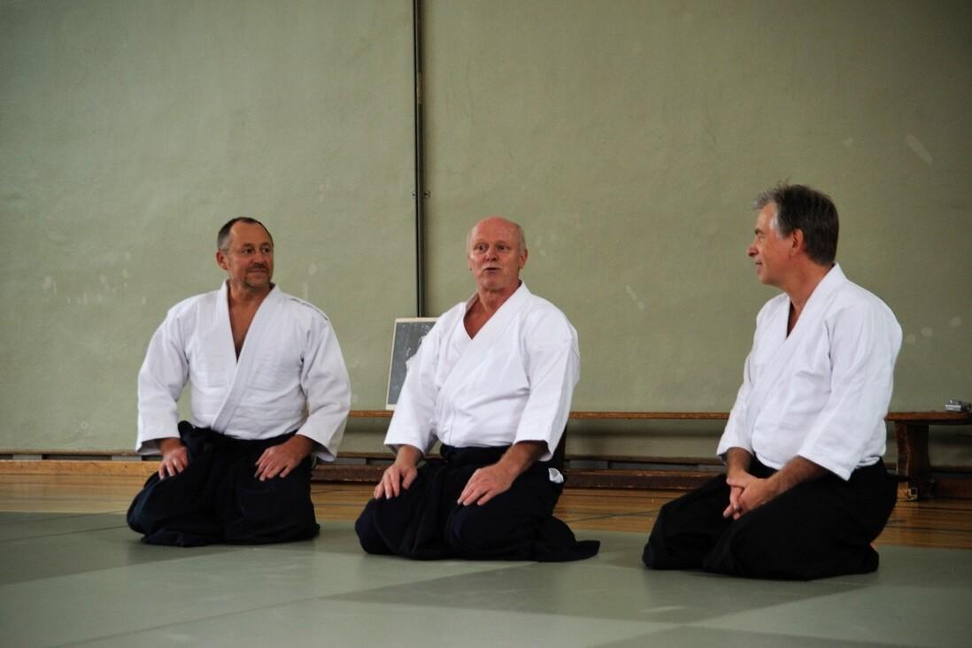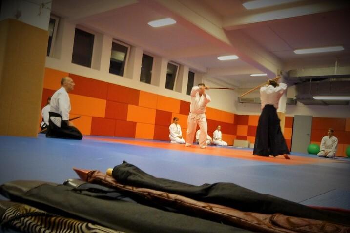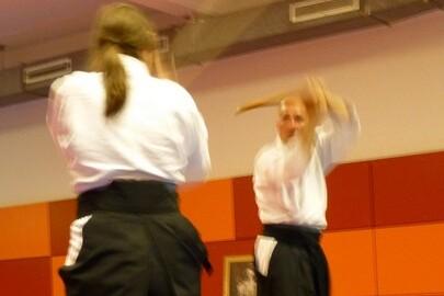 Teil des Trainings sind auch AIKI-JO und AIKI-KEN Übungen und natürlich eine ausführliche Gymnastik.