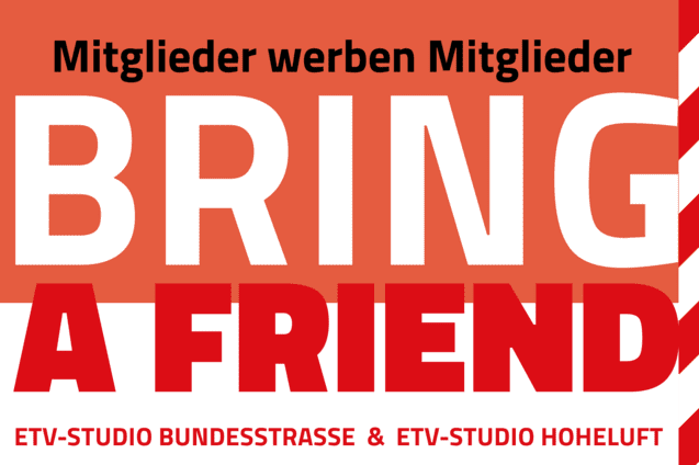 Die ETV-Studios Bundesstraße und Hoheluft starten im April wieder ihre beliebte Mitglieder-werben-Mitglieder-Aktion „Bring a Friend“, die perfekte Gel…